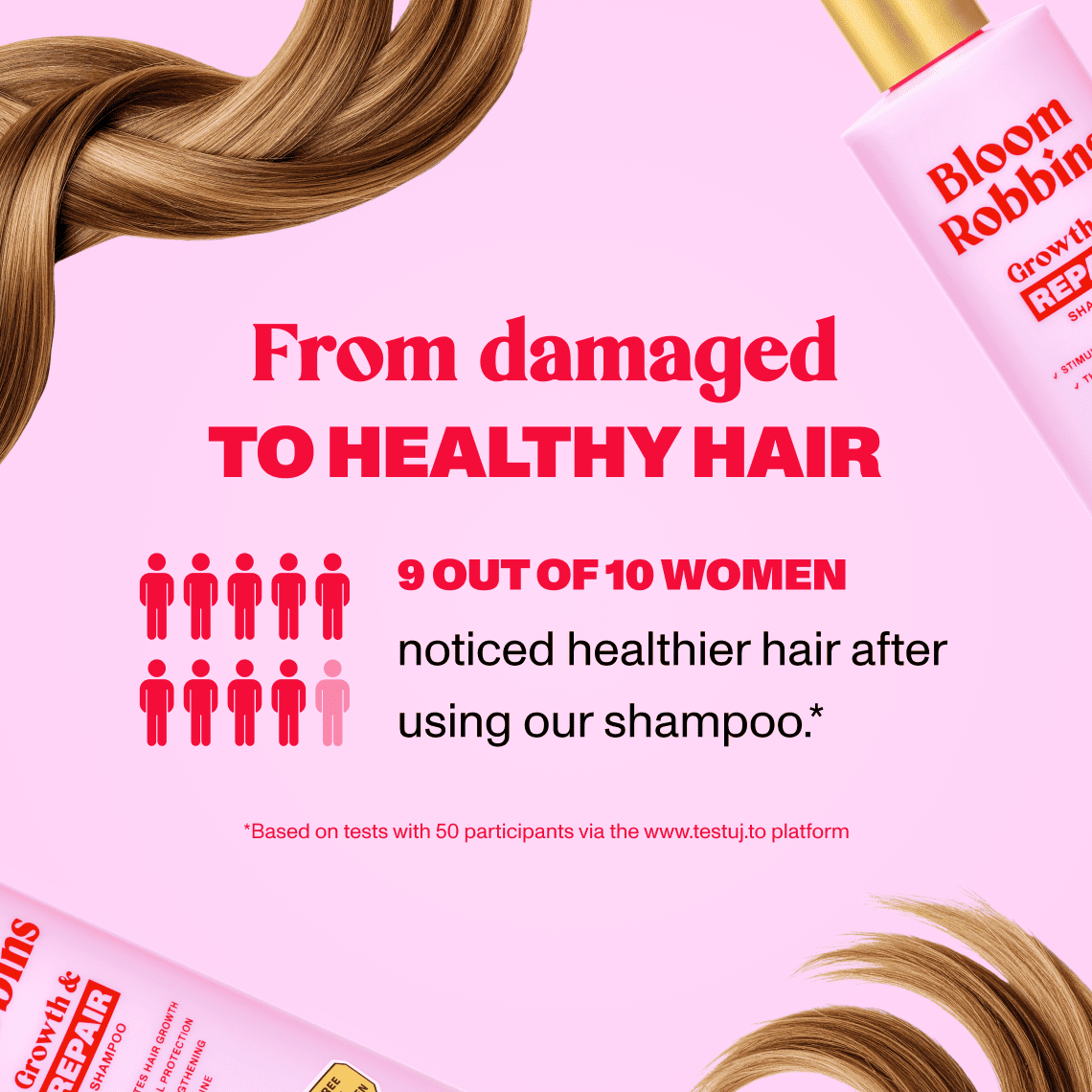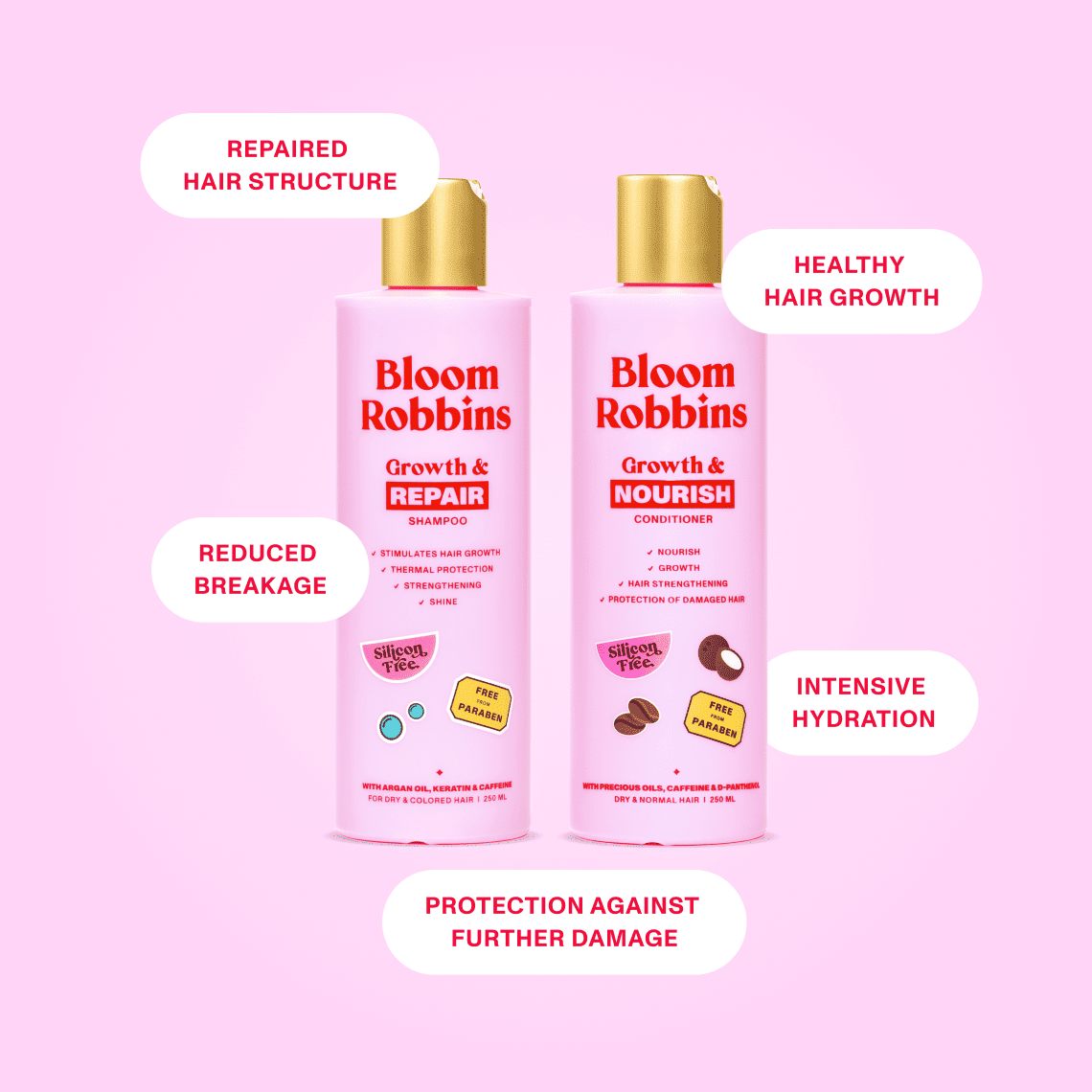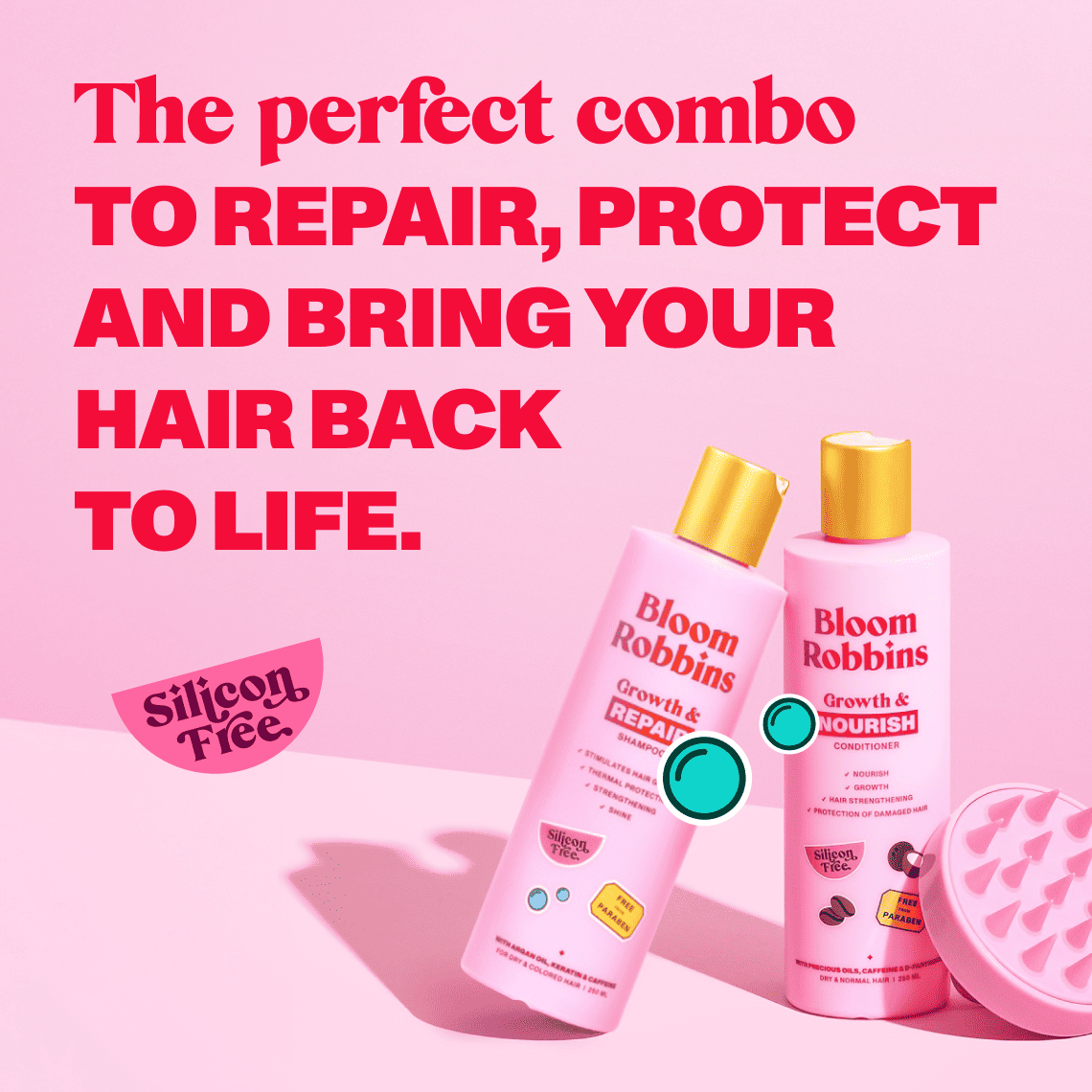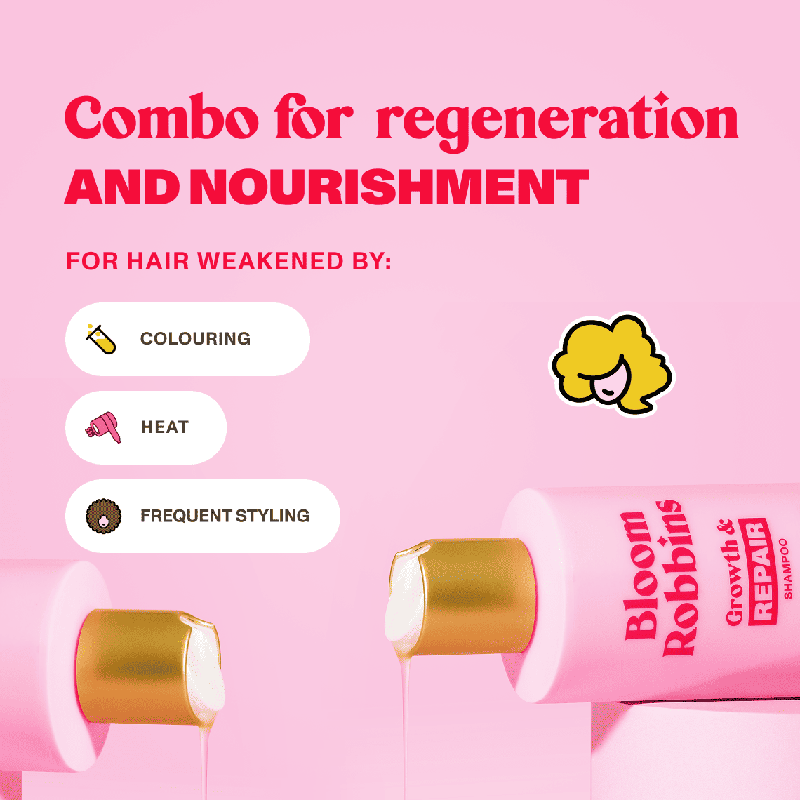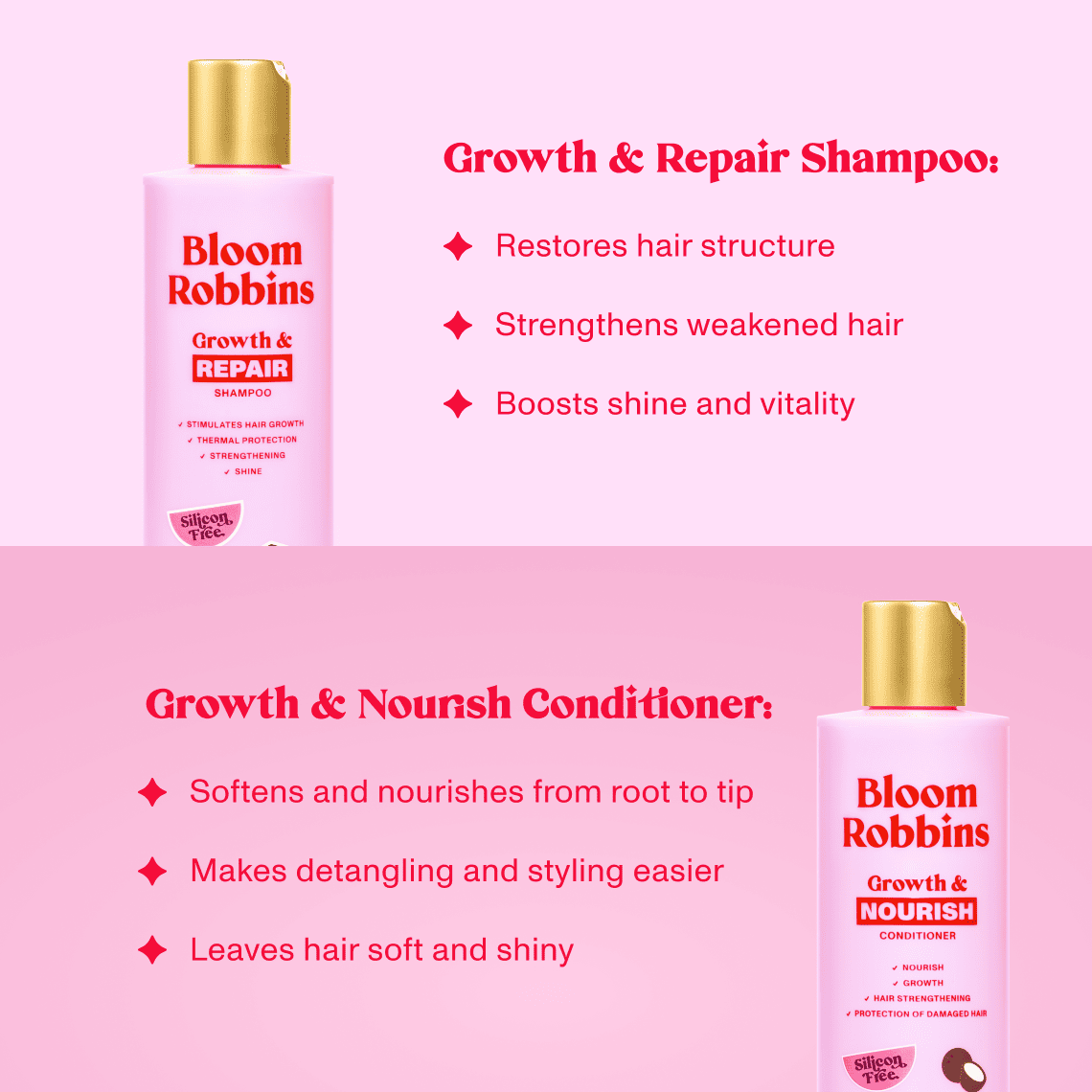 The Growth & Repair Shampoo with keratin dives deep into every strand, rebuilding its structure and restoring lost strength. Follow with the Growth & Nourish Conditioner, packed with rich shea butter, to flood your hair with hydration, seal in moisture and protect it from further damage.