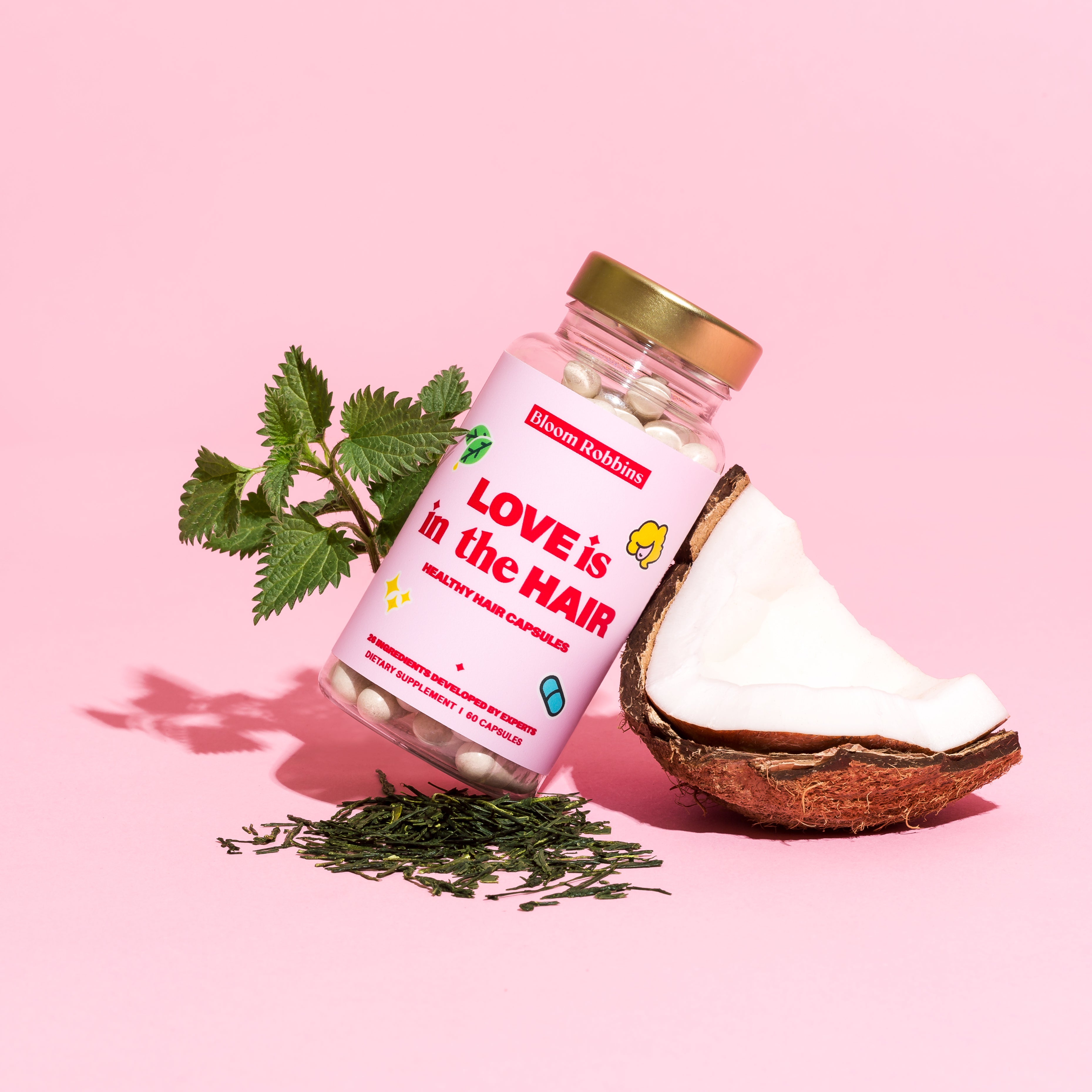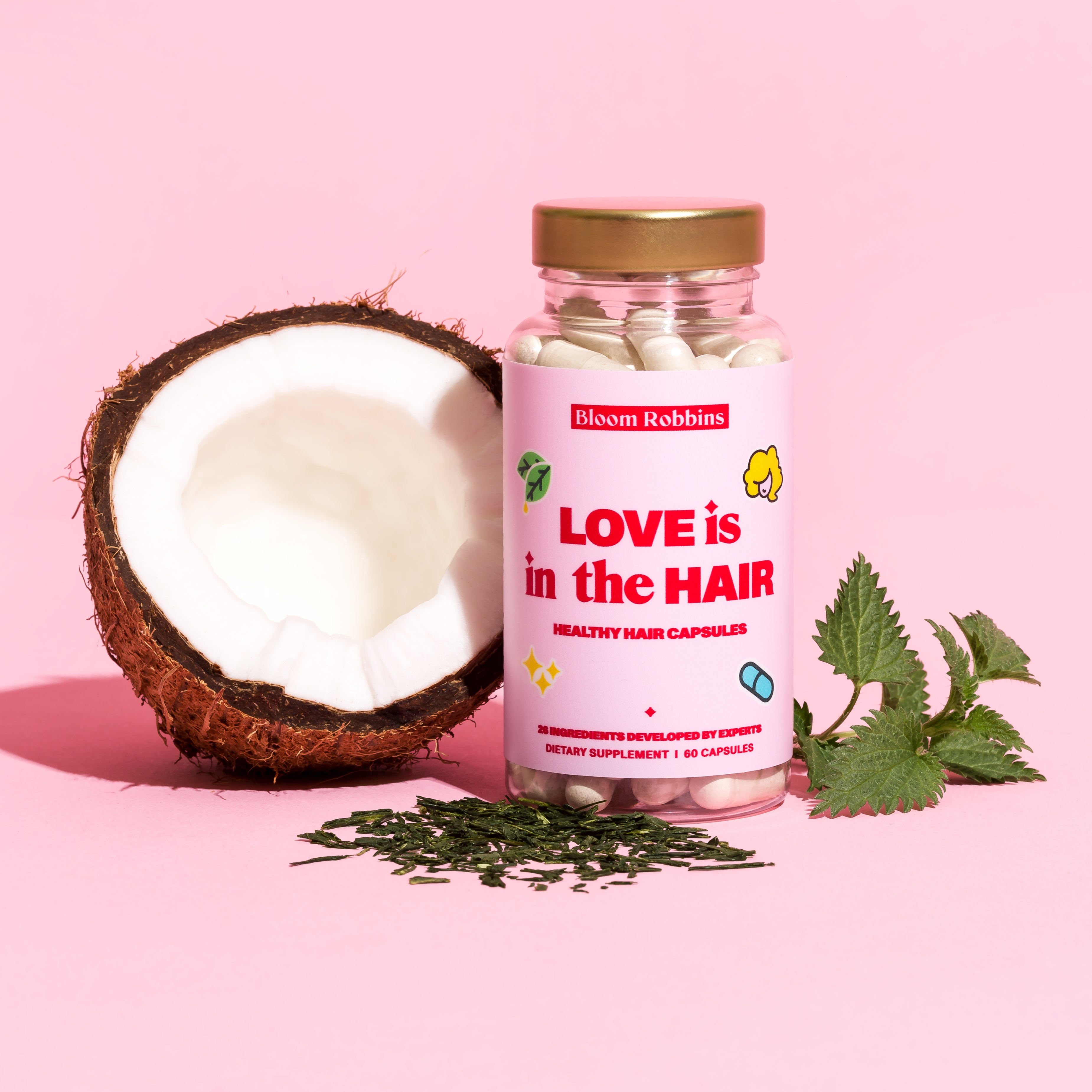 Love is in the hair capsules is a hair supplement in the form of capsules with 26 ingredients.