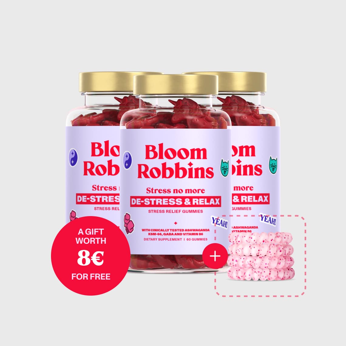 (3 g): Glucose Syrup, Sugar, Water, Extract from Ashwagandha root (Withania Somnifera), Citric Acid E-330 (Acid), Thickener (Pectine E-440), Extract from Lemon Balm (Melissa officinalis), Anthocyanins E-163 (Color), Natural Flavor, Vegetable Oil (Coconut), Trisodium Citrate E-331 (Acidity Regulator), GABA (Gamma-Aminobutyric Acid), Pyridoxine HCL, Carnauba Wax E-903 (Anticaking Agent)