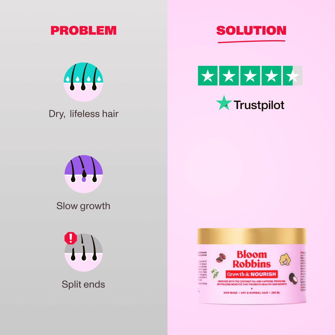 If you’re someone who constantly struggles with hair loss and damage, the Growth & Nourish mask is your ideal solution. This hair growth mask, with its perfectly balanced formula, accelerates hair growth, promotes regeneration, and provides deep hydration. You’ll fall in love with its luxurious texture and delightful coconut scent from the very first application!